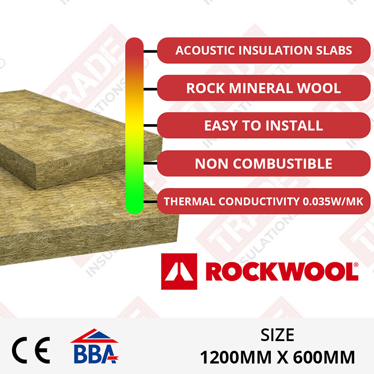 75mm RWA45 Rockwool Slab Insulation is 1200mm x 600mm with a density of 45kg/m3. Rockwool RWA45 gets its name from Rockwool Acoustic and the density of the product. The lower the density the better thermal quality.